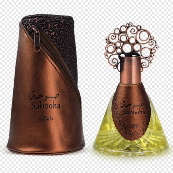 Download this stunning, high-resolution PNG image of a Sabooha perfume bottle! Featuring a beautifully designed glass bottle with intricate detailing and a luxurious leather pouch, this image is perfect for beauty blogs, product mockups, or adding a touch of elegance to your projects. Free for personal and commercial use – enhance your designs today with this captivating Arabic fragrance visual!