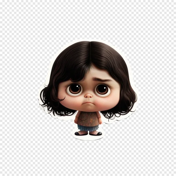 Express your feelings with this adorable yet melancholic sad chibi girl PNG. Featuring huge, expressive brown eyes, a subtle pout, and wavy dark hair, this cute cartoon character captures a moment of quiet sorrow or disappointment. Perfect for adding a touch of emotion to your digital projects, social media posts, graphic designs, or personalized crafts. Download this high-quality, transparent background image for free and let this sweet, pensive girl convey your message. Ideal for stickers, avatars, or any design needing a soft, relatable emotional touch. Get your free sad chibi girl PNG today!