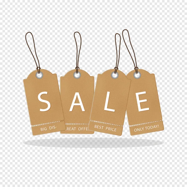 Boost your marketing with our free 'SALE' tags PNG! This high-quality, transparent image features four rustic brown hang tags spelling out 'SALE,' with additional text like 'BIG DIS-', 'GREAT OFFE', 'BEST PRICE', and 'ONLY TODAY!'. Perfect for e-commerce stores, promotional banners, social media posts, or any design needing to announce discounts and special offers. Download this versatile, ready-to-use graphic to attract customers and highlight your incredible deals instantly. Enhance your sales campaigns today with this compelling, free-to-download PNG.