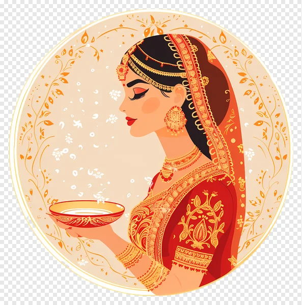 Download this stunning free PNG illustration featuring a serene Indian woman adorned in a rich red traditional saree and exquisite gold jewelry. She gracefully holds a ritual bowl, perfect for depicting cultural festivals like Diwali, weddings, or other auspicious ceremonies. This beautiful vector art captures the essence of South Asian heritage and elegance. Ideal for graphic design projects, invitations, cultural event promotions, and digital art. Get your high-quality transparent background PNG image now and add a touch of traditional beauty to your creations!
