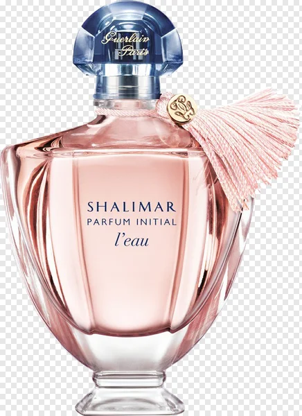 Download a high-quality, transparent PNG image of the iconic Shalimar perfume bottle by Guerlain. Perfect for graphic design, presentations, website backgrounds, or any project needing a touch of luxury and elegance. This free PNG features the 'Parfum Initial L'eau' edition with its distinctive shape and branding. Enhance your visuals with this beautiful, royalty-free image today!