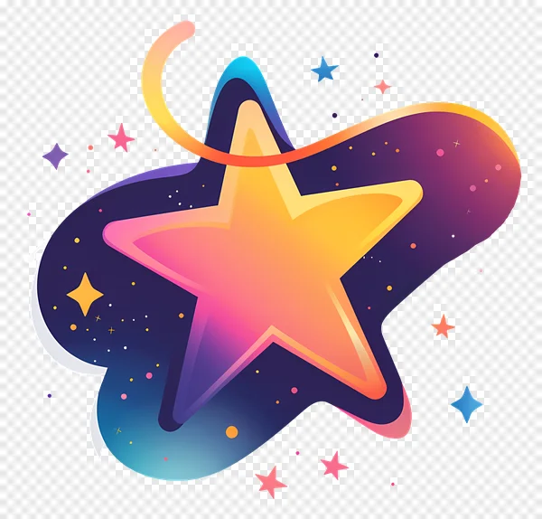 Elevate your creative projects with our stunning Free Gradient Star PNG! This vibrant abstract design features a radiant five-pointed star at its center, bursting with warm orange, pink, and purple gradients. Surrounded by a cosmic swirl of blues and deep purples, dotted with twinkling smaller stars, sparkling crosses, and colorful geometric shapes, it evokes a sense of wonder and magic. Perfect for graphic design, social media posts, presentations, party invitations, digital art, or enhancing any project needing a pop of color and celestial charm. Download this high-quality, transparent PNG image instantly and add a touch of abstract sparkle to your work for free!