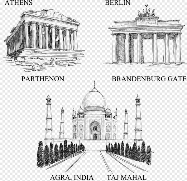 Download this sketch landmarks building, parthenon, brandenburg gate, taj mahal, png PNG tags PNG image with transparent background which is free of cost. You don't need to remove background anymore. Scroll down to download more similar styles of sketch PNG images. They are perfectly suitable for designing presentations, stickers, banners or sharing on social media.