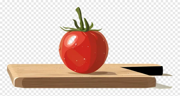 Download this high-quality, free PNG image of a sliced tomato on a wooden cutting board with a knife! Perfect for food blogs, recipe websites, cooking tutorials, or any project needing a vibrant vegetable graphic. This illustration features a realistic tomato with water droplets, ideal for adding a fresh and healthy touch to your designs. Get instant access – no attribution required!