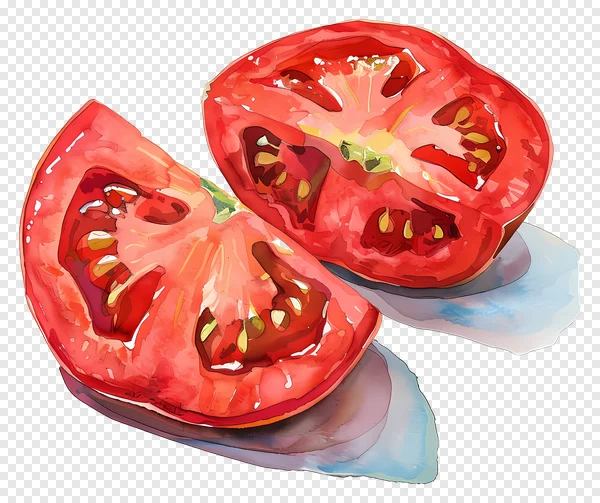 Download this beautiful, high-quality sliced tomato PNG image for free! Featuring a vibrant watercolor-style illustration of two tomato halves, this image is perfect for food blogs, recipe designs, health & wellness content, or any project needing a fresh, organic touch. Transparent background for easy integration. Enhance your designs with this realistic yet artistic tomato graphic – download now and use it in your personal or commercial projects!