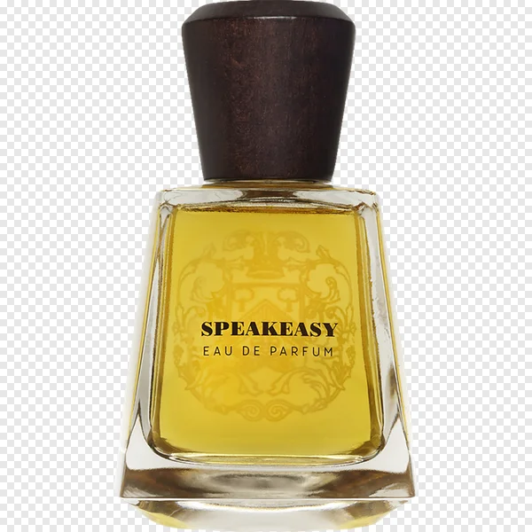 Discover and download this exquisite Speakeasy Eau de Parfum bottle as a free PNG image. This high-quality graphic features a stylish clear glass bottle, an ornate vintage label design with "SPEAKEASY" text, a dark wooden cap, and a warm amber-colored liquid, all isolated on a transparent background. Ideal for beauty product mockups, e-commerce websites, graphic design projects, or adding a touch of classic elegance to presentations. Enhance your visuals with this luxury fragrance bottle PNG today!