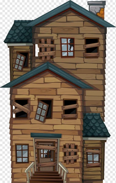 Download our high-quality, free transparent PNG of a spooky cartoon haunted house! This detailed illustration features an old, abandoned wooden mansion with dark shingled roofs, creepy broken windows, and boarded-up doors, perfect for adding a touch of eerie charm to your Halloween projects, game designs, or educational materials. With a dilapidated look and a cracked chimney, this isolated graphic is ready for instant use. Enhance your digital creations, printables, or presentations with this versatile and chilling asset. Get your free haunted house PNG today!