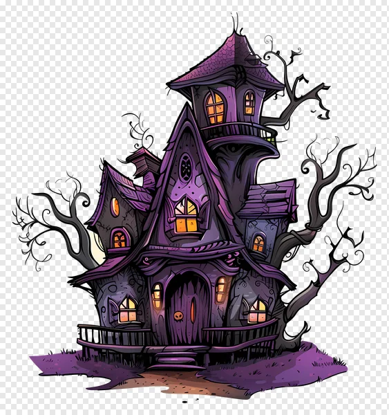 Tags: Halloween October cartoon house creepy mansion dark fantasy digital illustration free download glowing windows gothic haunted house horror art jack-o-lantern mystery purple house scary spooky architecture spooky house transparent PNG twisted trees