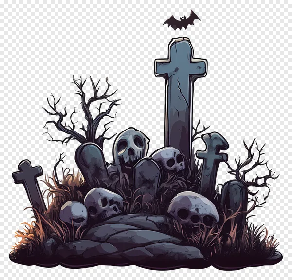 Download this free spooky cemetery PNG featuring detailed tombstones, skulls, and a creepy atmosphere! Perfect for Halloween designs, horror projects, game backgrounds, or adding a gothic touch to your artwork. High-quality, transparent background for easy integration. Get your free download now and create something terrifyingly awesome!