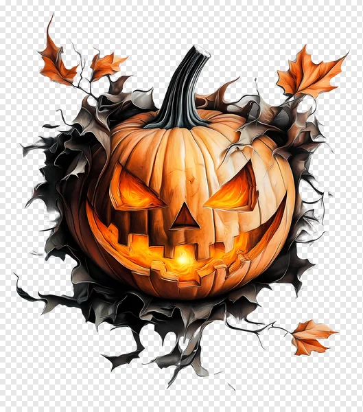 Download this captivating free PNG of a spooky Jack-o'-lantern, perfect for your Halloween projects! This intricately carved pumpkin features glowing, fiery eyes and a menacing smile, surrounded by dark, twisted leaves and hints of vibrant autumn orange foliage. Its intense orange glow stands out dramatically against a pure black background, making it an ideal choice for overlaying on any design with ease. Use this high-quality transparent image for creepy invitations, social media posts, website banners, eerie decorations, or any festive digital art that needs an instant touch of Halloween spirit. Get ready to add a truly sinister and festive element to your designs – download this haunting Jack-o'-lantern PNG for free today!