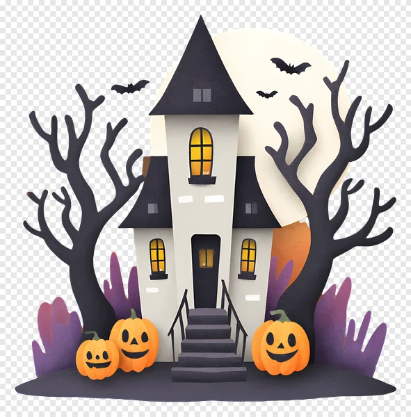 Download this charming and spooky Halloween house PNG image for free! Perfect for creating festive graphics, Halloween party invitations, website designs, social media posts, or adding a touch of Halloween spirit to any project. Featuring a haunted house, glowing pumpkins, bats, and a full moon, this high-quality PNG is ready to use. Get your free download now and make your Halloween creations extra special!