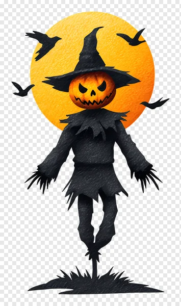 Download this captivating free PNG image featuring a classic Halloween scarecrow! Our spooky jack-o'-lantern headed figure, complete with a witch's hat and ragged dark clothing, stands against a vibrant, textured orange full moon, while black crows circle overhead. Perfect for adding a touch of eerie charm to your Halloween party invitations, digital crafts, website banners, social media posts, or festive decorations. This high-quality, transparent background PNG is ready for your creative projects. Get your free download now and make your designs pop with this iconic autumn and horror-themed illustration. Ideal for graphic designers, content creators, and anyone celebrating the spooky season.