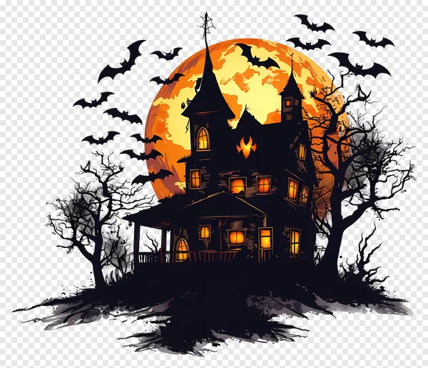 Download this stunning, high-quality haunted house PNG image for free! Perfect for Halloween projects, spooky designs, website graphics, social media posts, and more. Featuring a silhouetted mansion against a full moon and bats, this PNG is ideal for creating a chilling atmosphere. Get your free download now and add a touch of Halloween magic to your creations!