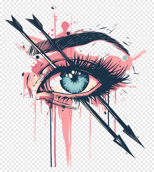 Discover this captivating free PNG image featuring an abstract grunge art eye pierced by bold arrows, adorned with vibrant pink and deep blue paint splatters and drips. The intense light blue iris stands out against the dark background, creating a visually striking and emotional design. Its unique style and transparent background make it perfect for a wide range of creative uses, including graphic design, social media posts, custom apparel, website headers, and personal projects. Download this high-quality eye graphic instantly to add a raw, artistic, and expressive touch to your digital artwork and designs. Ideal for designers, artists, and anyone seeking impactful, free transparent images.