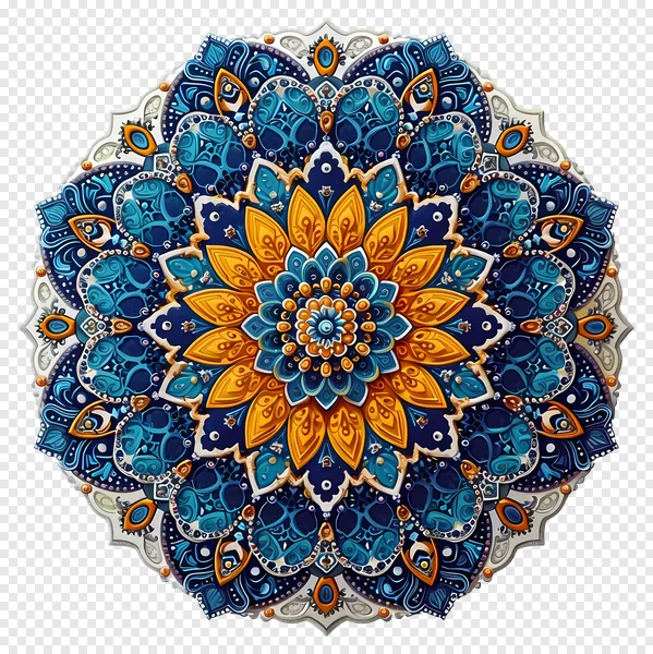 Discover this breathtaking intricate blue and gold floral mandala PNG, perfect for adding a touch of elegance and spirituality to your creative designs. Featuring rich shades of deep navy blue, vibrant royal blue, serene sky blue, and dazzling golden yellow, this ornate symmetrical pattern evokes a sense of calm and intricate beauty. Ideal for graphic design projects, print materials, website backgrounds, digital art, or personal crafts. Download this high-quality, free transparent PNG and elevate your work with its detailed, meditative charm. Perfect for bohemian, ethnic, spiritual, or decorative themes.