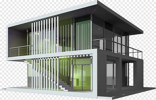 Download this high-quality, free PNG image of a striking modern two-story house. This architectural marvel features a sleek minimalist design with a prominent flat roof, expansive glass facades, and sophisticated white vertical louvers. The multi-level structure includes an elegant exterior staircase and multiple balconies, perfect for showcasing contemporary luxury living. With its transparent background, this versatile image is ideal for architects, designers, real estate professionals, or anyone needing a premium visual for presentations, website design, or marketing projects. Enhance your creative work with this stunning residential building render today!