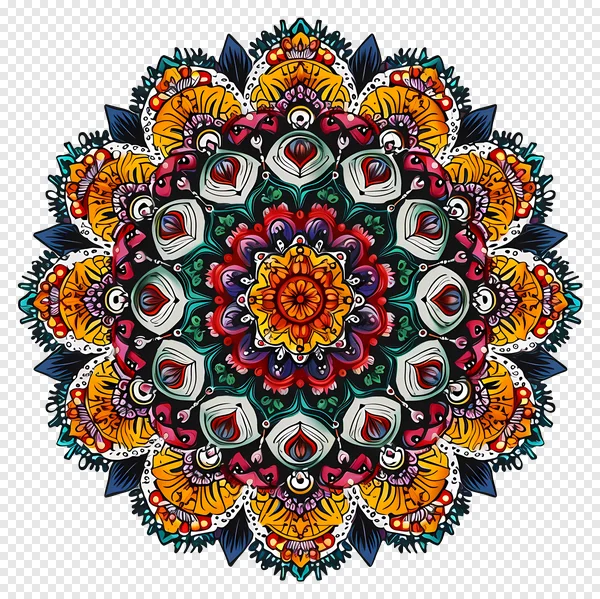 Tags: abstract art black background bohemian bright colors colorful decorative digital illustration floral pattern graphic element intricate design mandala meditation psychedelic spiritual art symmetrical transparent PNG vibrant yoga zen