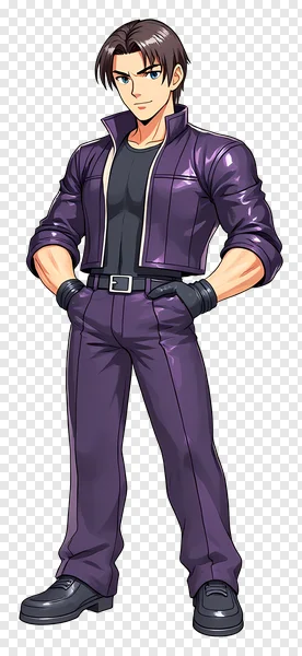 Download this striking free PNG of a cool anime guy! He features short brown hair, piercing blue eyes, and a confident smirk, all while rocking a sleek, shiny purple jacket, a black t-shirt, and matching purple pants with black gloves. This full-body, transparent background character is perfect for game development, digital art projects, social media graphics, web design, or adding a dynamic touch to any creative work. Get your high-quality, free download today and bring a stylish flair to your designs!