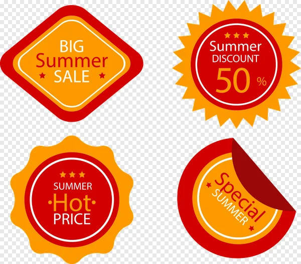 Boost your seasonal campaigns with this free collection of four vibrant summer sale and discount badges. This high-quality PNG pack features essential promotional texts like "BIG Summer SALE," "Summer DISCOUNT 50%," "Summer Hot Price," and "Special SUMMER," all in eye-catching red and orange designs. Perfect for e-commerce sites, social media marketing, advertisements, and any digital or print promotions. Download these transparent background assets now to effortlessly highlight your best deals and attract customers this summer!