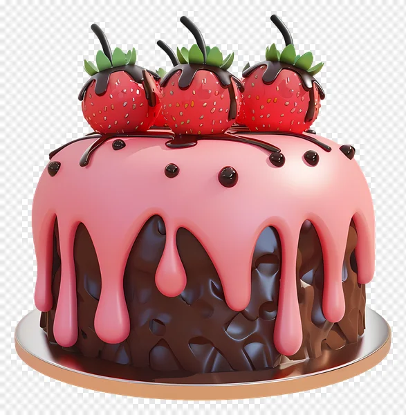 Tags: 3D render baked goods birthday cake cake celebration chocolate cake chocolate drip dessert drip cake food icon glossy isolated party patisserie pink frosting strawberries strawberry cake sweet treat transparent PNG vibrant