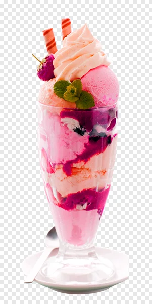 Indulge in the visual delight of this vibrant pink ice cream sundae PNG, perfect for adding a touch of sweetness to your projects. This high-quality, transparent image showcases a mouth-watering parfait glass filled with luscious layers of berry-flavored ice cream, rich fruit sauce, and possibly whole berries. It's elegantly crowned with a fluffy swirl of whipped cream, garnished with fresh green mint leaves, a juicy raspberry-like berry, and two crisp wafer sticks. Ideal for restaurant menus, bakery promotions, social media graphics, website banners, or any design craving a refreshing and delicious dessert visual. Download this appetizing, cutout PNG for free and bring a splash of summer joy to your creative work!