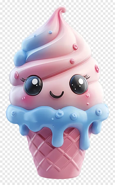Download this adorable free PNG of a kawaii pink and blue ice cream cone, perfect for adding a touch of sweetness to your creative projects! Featuring a cheerful cartoon face, vibrant glossy swirls, a playful blue drip, and subtle sprinkles, this high-quality transparent image is ideal for children's designs, stickers, invitations, social media posts, or any digital art. Bring a vibrant, happy, and cute vibe to your work with this delightful, free-to-use ice cream character illustration. Enhance your graphics instantly!