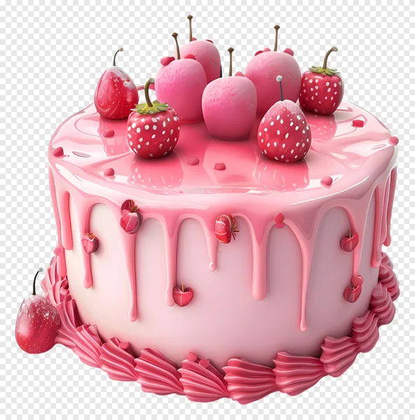Download this enchanting pink drip cake PNG for free! This delightful, sweet illustration features a beautifully frosted cake with vibrant pink icing dripping down its sides. Adorned with charming stylized red strawberries dotted with white, glossy pink cherries, and subtle heart-shaped details, it's perfect for adding a touch of sweetness to any design. Ideal for birthday invitations, Valentine's Day projects, bakery promotions, digital scrapbooking, or any celebration theme. High-resolution with a transparent background for easy integration into your creative work. Get this delicious dessert graphic today!