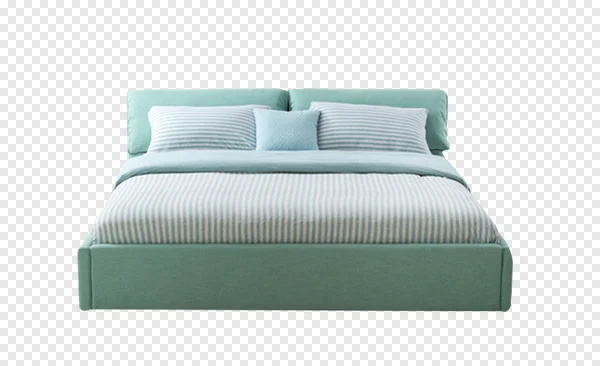 Download this high-resolution PNG image of a teal bed with crisp white striped bedding. Perfect for website design, brochures, or any project needing a fresh, clean aesthetic. The image features a teal upholstered bed frame, matching pillows, and a duvet cover with a classic stripe pattern. Download now and elevate your design! This free PNG image offers a clean background for easy integration into your projects.