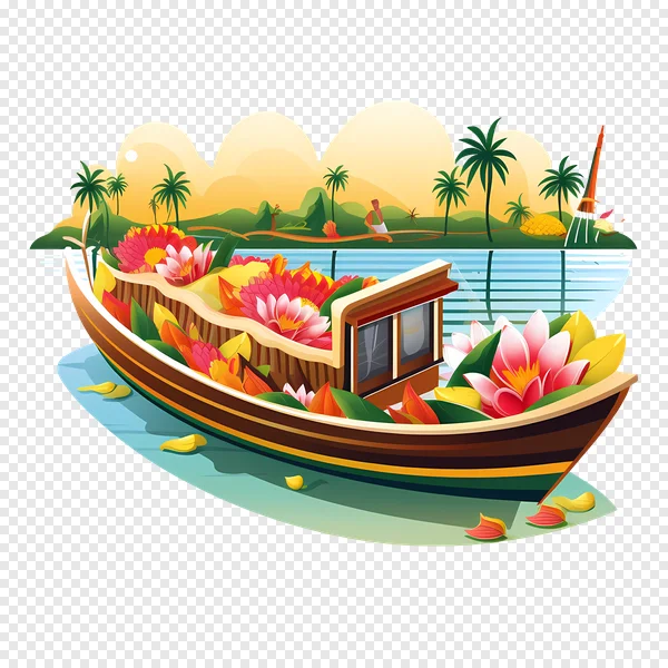 Download this beautiful, high-resolution PNG image of a traditional boat adorned with vibrant tropical flowers! Perfect for travel-themed designs, summer graphics, or adding a touch of paradise to your projects. This free PNG features a serene landscape with palm trees and a sunset backdrop. Use it for web design, presentations, social media, or any creative endeavor. Get your free download now and bring the tropics to life!