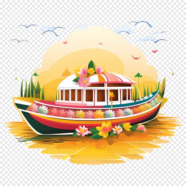 Download this beautiful tropical boat illustration adorned with vibrant flowers, perfect for travel-themed designs, summer graphics, or adding a touch of paradise to your projects! This high-quality PNG image features a detailed boat scene with a sunset backdrop and playful birds. Use it for web design, presentations, social media, or print – all for free! Enhance your creative work with this stunning, royalty-free image.