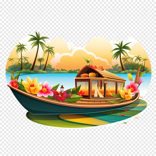 Tags: PNG backwaters birds calm water cartoon exotic flowers free download houseboat illustration lush foliage nature palm trees river serene sunset traditional boat transparent travel tropical paradise vacation