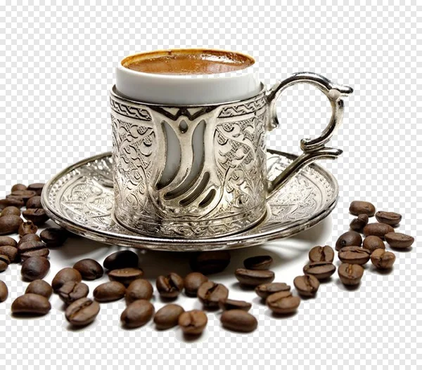 Download this stunning, high-quality Turkish coffee PNG image for free! Featuring a beautifully ornate silver cup and saucer with rich, dark coffee and scattered coffee beans, it's perfect for food blogs, coffee shop promotions, or adding a cultural touch to your designs. Use it for websites, presentations, social media, and more. Enhance your projects with this authentic and visually appealing coffee graphic. Transparent background for easy integration!