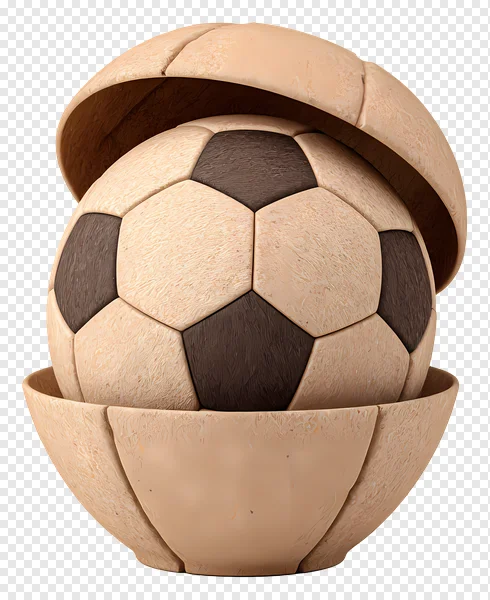 Discover a truly unique and conceptual digital art piece: a textured soccer ball nestled within a partially open, cracked shell. This stunning free PNG image features a football crafted with an intricate, earthy texture in shades of beige and dark brown, evoking a sense of raw, natural material like wood or dry earth. The surrounding shell, made of the same distinctive material, frames the ball beautifully, creating an intriguing visual narrative. Perfect for adding a creative and artistic touch to your sports-themed designs, website banners, presentations, or digital art projects. Download this high-quality, transparent background PNG for free to elevate your next creative endeavor and make a distinctive statement. Ideal for designers, marketers, and enthusiasts seeking captivating and unconventional imagery. Get your free download now!