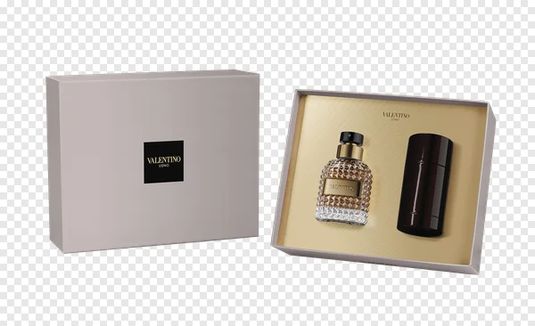 Tags: Valentino Uomo beauty product brand image cologne cosmetic deodorant stick designer fragrance diamond pattern bottle elegant packaging fashion accessory free PNG gold interior high-quality luxury perfume men's fragrance perfume gift set pink gift box premium grooming product photography still life