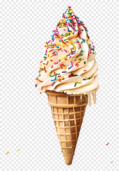Download this delicious, high-quality vanilla ice cream cone PNG image for free! Perfect for summer designs, food blogs, dessert menus, or any project needing a sweet touch. This transparent background image features a swirl of creamy vanilla ice cream topped with colorful sprinkles, all nestled in a classic waffle cone. Enhance your visuals with this delightful and versatile graphic – instant download available now!
