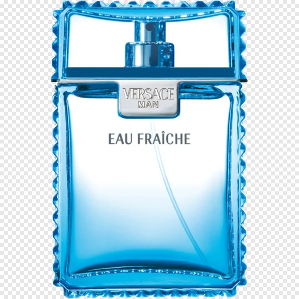 Download a high-quality, transparent PNG image of the iconic Versace Man Eau Fraîche perfume bottle. Perfect for graphic design projects, presentations, website visuals, or social media content. This free-to-use image features the distinctive blue bottle and clear branding. Enhance your projects with this stylish and recognizable fragrance design element! Get your free download now!
