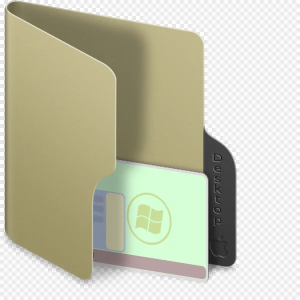 Download this free high-quality PNG of a unique desktop folder icon, perfect for organizing your digital workspace. This versatile graphic features a classic tan folder with a green card showcasing the iconic Windows logo, complemented by a sleek dark tab bearing the 'Desktop' text and an Apple logo. Ideal for developers, designers, or anyone looking to personalize their PC or Mac interface, this transparent PNG offers a professional and modern look. Enhance your desktop experience and streamline your file management. Get your free folder icon download today!