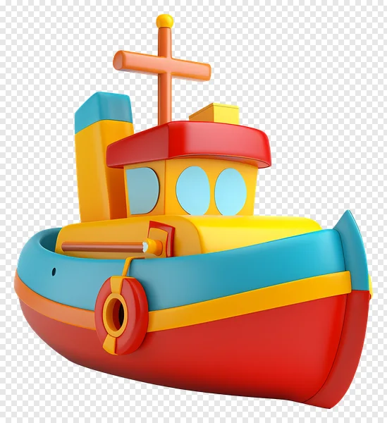 Set sail into your creative projects with this adorable and vibrant 3D cartoon tugboat PNG! Rendered with glossy textures in cheerful primary colors – red, blue, and yellow – this playful toy boat illustration features cute round portholes, a mast, and a detailed orange lifebuoy. Perfect for children's books, educational materials, party invitations, website design, or any project needing a touch of nautical fun. The high-resolution image comes with a transparent background, making it easy to integrate into your designs. Download this delightful and free boat clip art to add a splash of color and imagination to your digital or print media today!