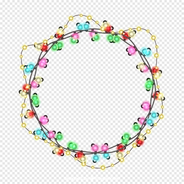 Tags: Christmas lights abstract circle bright bulbs celebration design colorful string lights decorative border fairy lights festive decor glowing lights holiday graphic iridescent light chain luminous elements party lights red green blue pink ring of lights round frame transparent PNG yellow dots