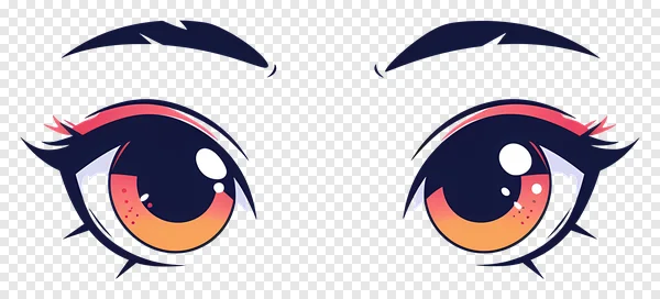 Enhance your projects with this stunning, vibrant anime eyes PNG, available for free download! Featuring large, expressive cartoon eyes with a beautiful orange and pink gradient iris, striking white highlights, and stylish dark blue eyelids and lashes, all on a transparent background. Perfect for character design, fan art, web graphics, digital art, or any creative endeavor needing a touch of anime charm. Get this high-quality illustration instantly to bring your designs to life with these captivating and cute eyes.