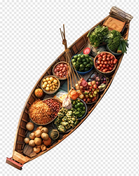 Tags: Asian market PNG Thai market floating market food free download fresh produce fruits healthy food leafy greens limes market boat marketplace onions overhead view raw food spices traditional transparent background vegetables wooden boat