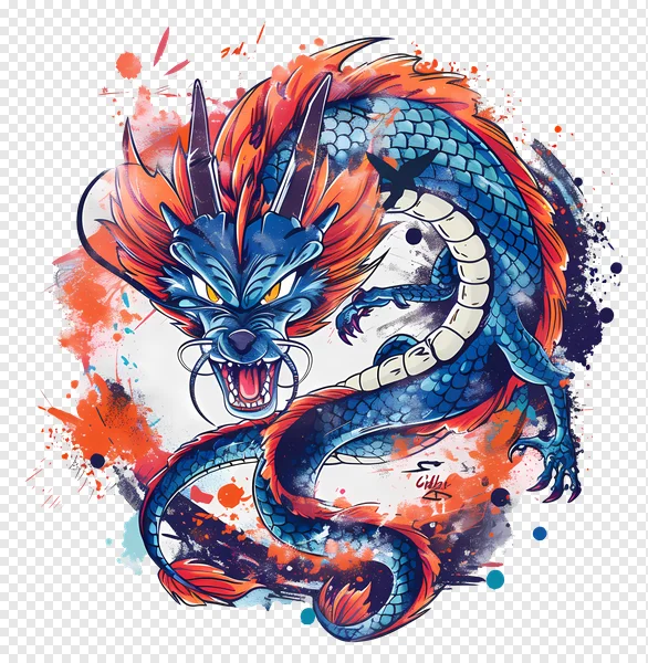Tags: T-shirt design abstract background artistic blue dragon cartoon dragon digital illustration dragon fantasy art fierce fiery mane free png graphic design grunge style legendary beast monster mythical creature orange dragon paint splatter scales vibrant