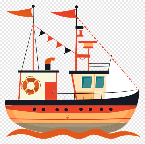 Set sail on your creative journey with this vibrant cartoon boat PNG! This charming illustration features a colorful vessel in shades of orange and red, adorned with fluttering flags, a distinct lifebuoy, and gentle waves, all on a transparent background. Ideal for maritime-themed designs, children's projects, travel promotions, or educational content. Its cheerful aesthetic and versatile PNG format make it perfect for easy integration into websites, presentations, or digital art. Download this high-quality, free image now to add a touch of nautical adventure to your next project!