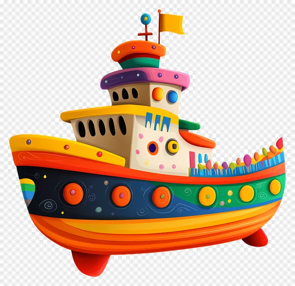 Dive into a world of vibrant imagination with our free high-quality PNG of a cheerful cartoon boat! This whimsical, multi-colored ship illustration features bright oranges, yellows, blues, and greens, perfect for bringing joy to any project. With its playful design and transparent background, it's ideal for children's books, school projects, birthday party invitations, website design, digital scrapbooking, and more. Download this delightful vessel now to add a splash of color and fun to your creative endeavors. Perfect for designers, educators, and parents seeking charming free graphics!
