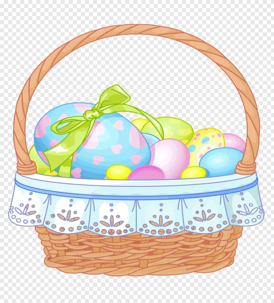 Download this adorable, high-quality PNG image of a festive Easter basket filled with beautifully decorated pastel eggs. Perfect for your spring-themed digital projects, holiday crafts, invitations, greeting cards, or website decorations. This vibrant cartoon illustration features a charming wicker basket with delicate lace trim, brimming with colorful eggs, including a prominent blue egg adorned with pink hearts and a cheerful green ribbon bow. Get this transparent background clipart for free and add a touch of cheerful Easter spirit to your designs! Ideal for personal and commercial use.