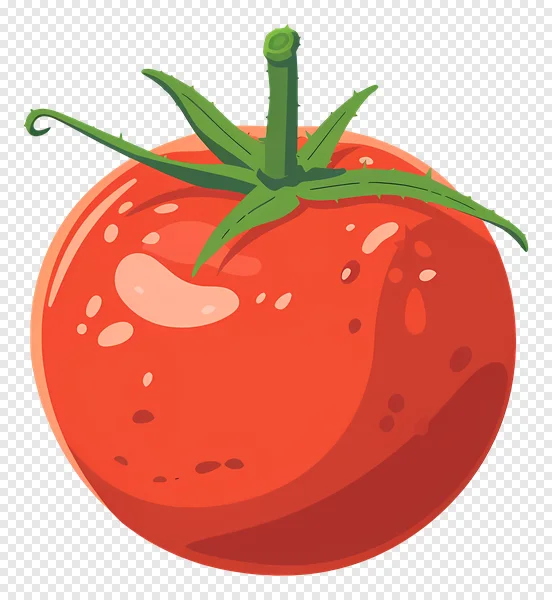 Enhance your digital designs with this vibrant, cartoon-style red tomato PNG image, showcasing a perfectly ripe, juicy tomato with its fresh green stem and delicate leaves. This high-quality illustration features subtle artistic reflections and a stylized texture, making it perfect for adding a healthy and appealing touch to any project. Ideal for recipe blogs, cooking websites, healthy eating campaigns, restaurant menus, grocery store advertisements, or various graphic design applications. Download this transparent background PNG for free to easily integrate a splash of color and fresh appeal into your creative work today!