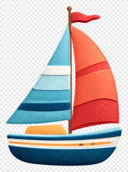 Set sail on your next creative project with this charming, high-quality PNG of a vibrant cartoon sailboat, available for free download! Featuring a deep blue hull, playful orange and light blue sails, and a distinctive red flag, this nautical illustration comes with a transparent background for seamless integration. It's perfect for adding a touch of summer, adventure, or childlike wonder to children's books, educational materials, website graphics, scrapbooking, party invitations, or presentations. Download this versatile boat clipart today and make your designs pop with its cheerful, textured style!