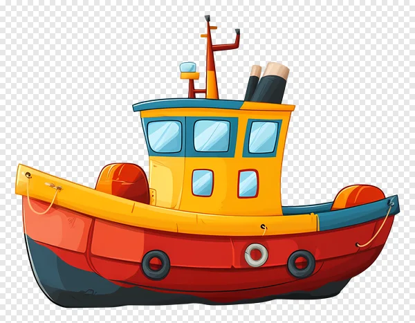 Navigate your creative projects with this charming and free cartoon tugboat PNG! Featuring a cheerful red and yellow hull, a blue cabin with windows, a tall smokestack, and nautical details like fenders and a lifebuoy, this high-quality illustration is perfect for children's books, educational materials, game design, website graphics, and more. The transparent background makes it easy to integrate into any design without hassle. Instantly download this colorful and friendly boat clip art to add a touch of maritime fun to your next creation. Get your free tugboat graphic today and set sail on your design adventure!