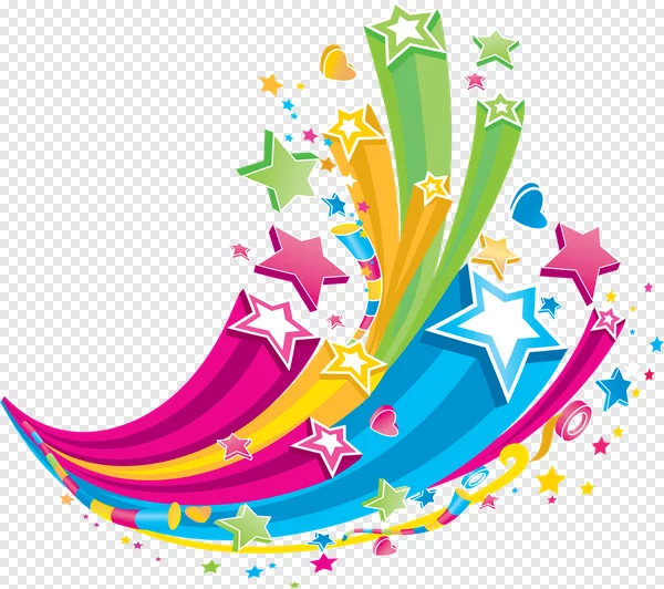 Unleash a burst of joy with this dazzling, high-quality PNG featuring vibrant stars, playful hearts, and energetic rainbow swirls! Perfect for adding a festive touch to any project, this free transparent graphic includes colorful ribbons and a party horn element, making it ideal for birthday invitations, event promotions, social media posts, or children's designs. Download this dynamic vector illustration to instantly elevate your creative work with its cheerful and celebratory spirit. Get your free abstract party PNG now!