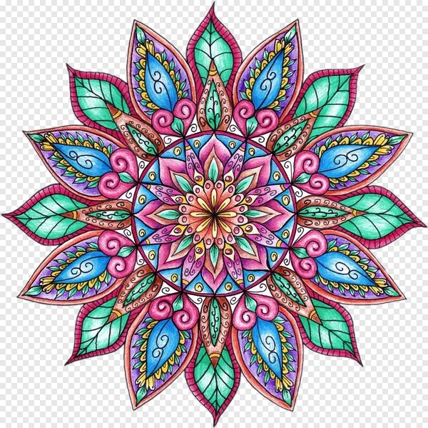 Discover this stunning, high-quality vibrant floral mandala PNG, bursting with an array of beautiful colors including pink, blue, green, purple, and yellow. Its intricate, hand-drawn details and flowing patterns evoke a sense of peace and spiritual harmony, making it perfect for meditation, yoga, or bohemian-themed designs. This transparent background PNG is ideal for graphic designers, crafters, or anyone seeking a unique decorative element for posters, invitations, web graphics, or printable art. Download this artistic illustration for free and add a splash of color and tranquility to your creative projects today!